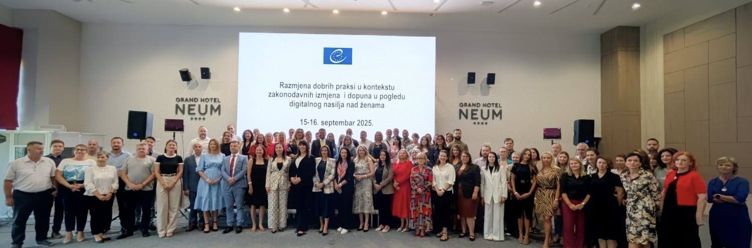 Aida Obuća, predsjednica Komisije za jednakopravnost spolova Doma naroda Parlamenta Federacije Bosne i Hercegovine i Sandra Imširović, članica Komisije, učestvovale su na dvodnevnoj konferenciji u organizaciji Vijeća Europe u BiH „Razmjena dobrih praksi u kontekstu zakonodavnih izmjena i dopuna u pogledu digitalnog nasilja nad ženama“.