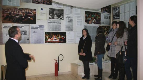 Učenici su obišli stalnu postavku fotografija postavljenu povodom 20 godina Parlamenta Federacije Bosne i Hercegovine. Tom prilikom, državni službenik Ivan Buda im je prezentirao historijat Parlamenta Federacije i strukturu i funkcionisanje Parlamenta Federacije.